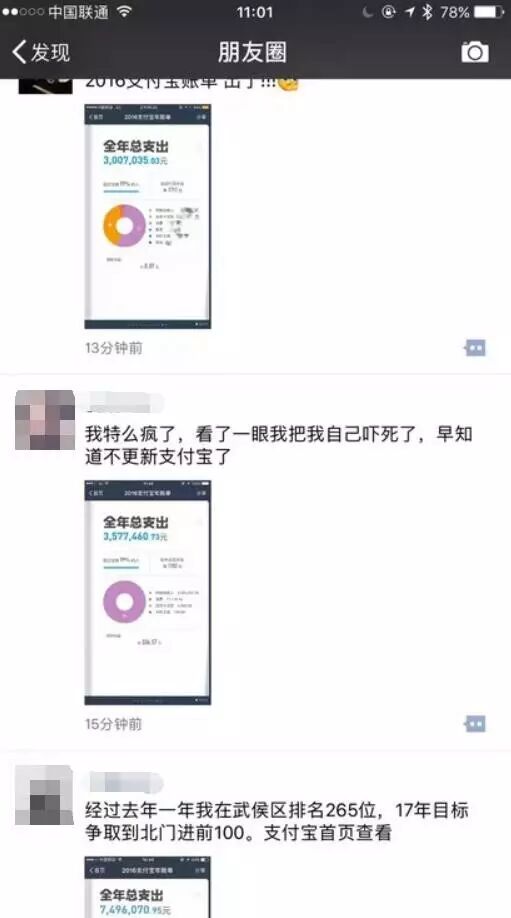 朋友圈里的支付宝账单