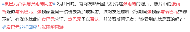 紧接着袁巴元又否认了与张雨绮同游,还反问:“你看到的就是真的吗?”