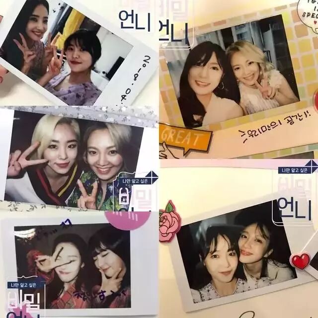 该节目已于去年九月结束播映,播出期间曾找来韩彩英,Yeri、孝渊,辉人、善美,瑟琪、皇甫惠贞,南宝拉、孝渊,夏荣、哈妮,有情组成秘密姐妹,她们之间自然的互动受到不少观众的喜爱。当然,也有许多女团成员知道这个节目,因此便有一些粉丝在签名会上利用便条纸询问自己的偶像希望跟谁一起出演,没想到,竟有三位女偶像都回答了同一个人!