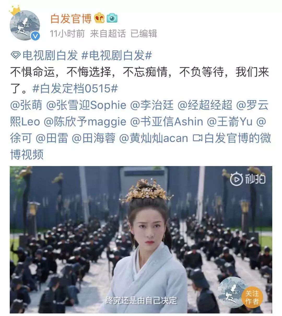 前几天,南风关注已久的一部古装剧《白发》,终于官宣定档要播了。