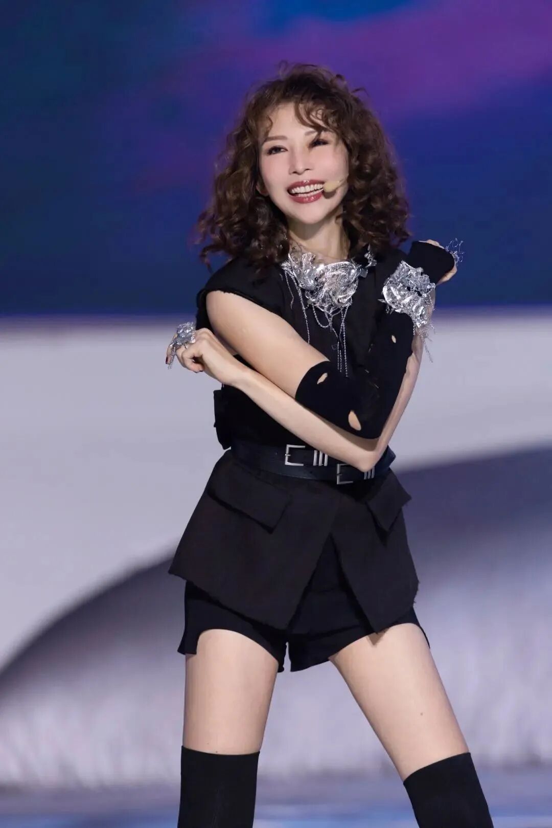 谈到自己在《乘风2023》里的表现,她说“一孕傻三年”,考虑到她生了三个孩子,那她得“傻”九年。她肢体协调性一般,跳舞很难跟上,早在1990年代的综艺里,她被主持人要求跳一小段舞,在台上已是无所适从。至于唱歌,普通话、节拍、音调都是门槛。她左支右绌,难以兼顾。由此可以解释她完成初舞台时的激动——即使在前一天彩排时,她也没能完整把那首歌唱下来。她将此形容为某种“神迹”。