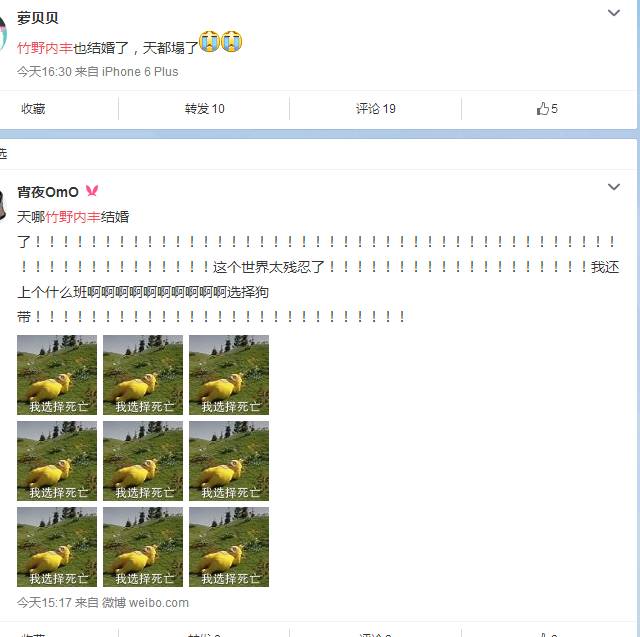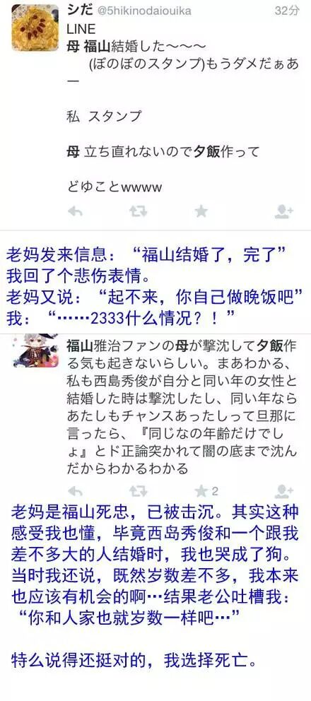 这里要先说一下,福山雅治和竹野内丰都是国民男神级别的明星,所以福山雅治结婚的消息传来后,网友基本是这样的反应: