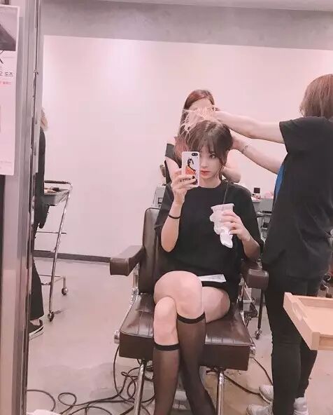 公开的照片中景丽展示了之前没有尝试过的刘海造型。以及景丽光滑的腿和黑色丝袜展示了性感魅力很吸引人们的视线。