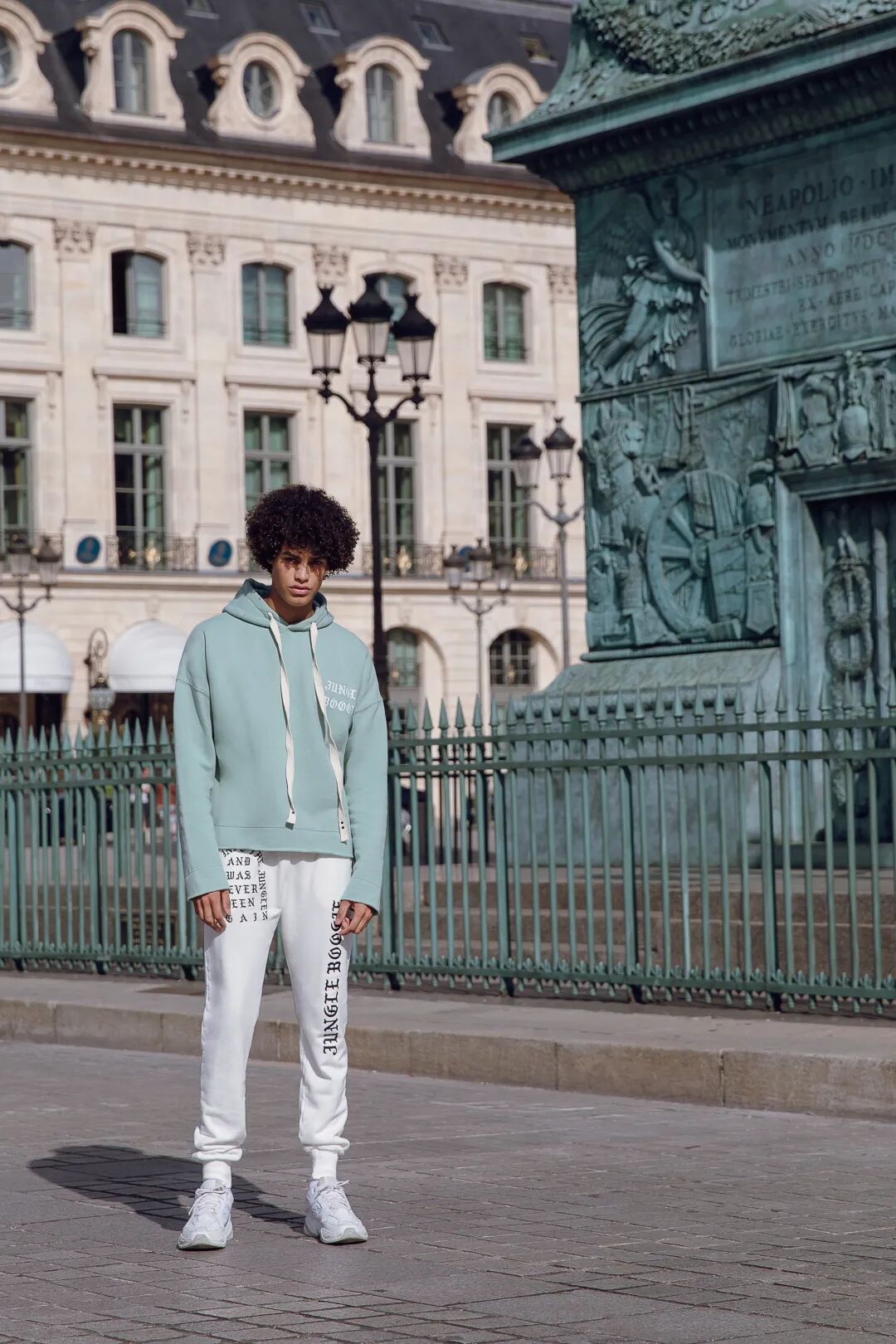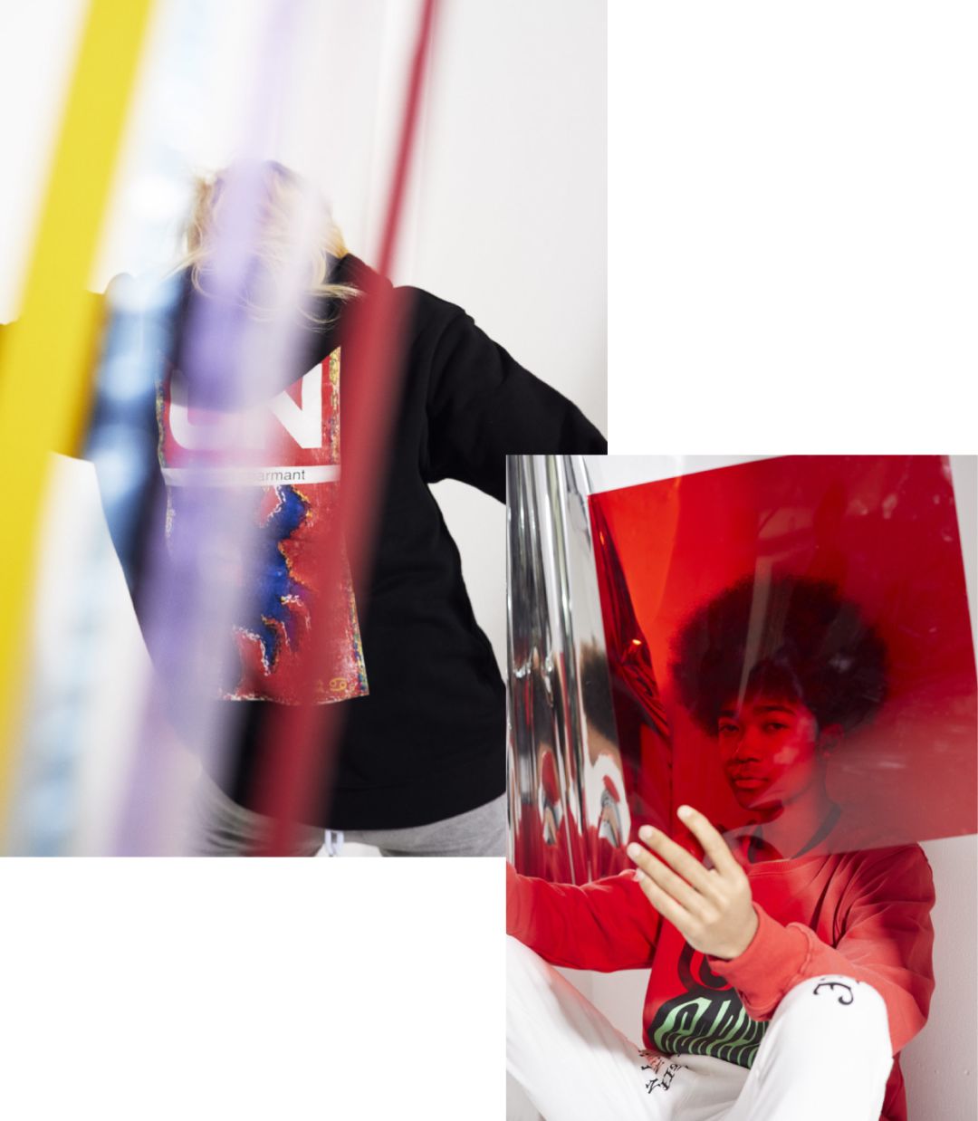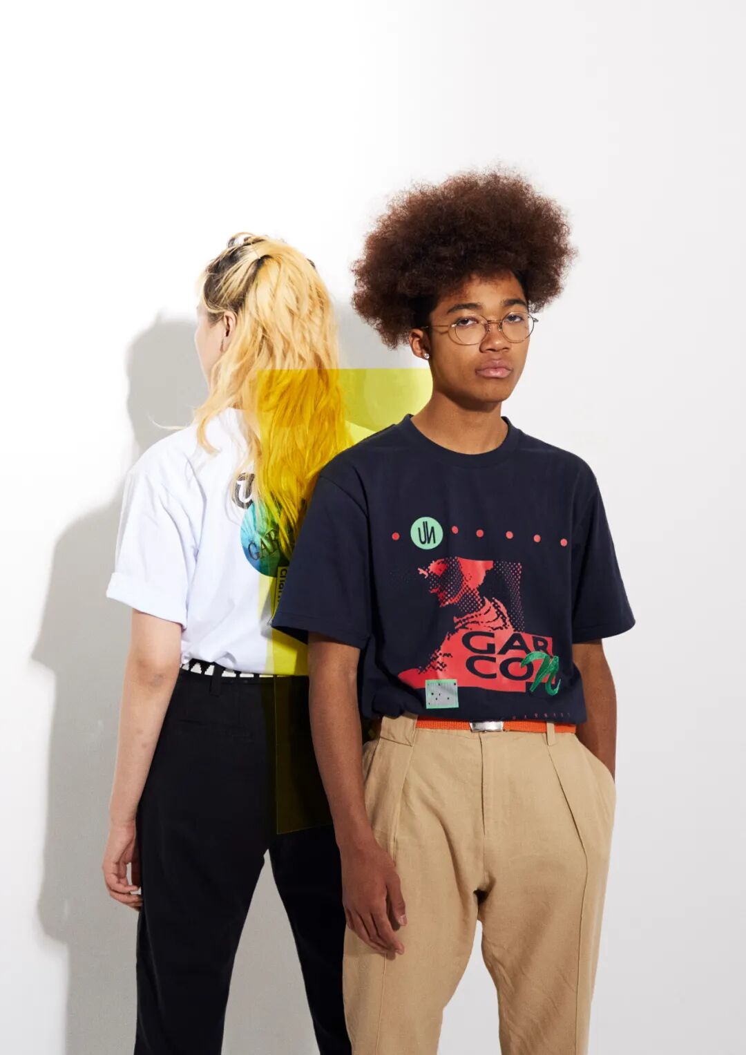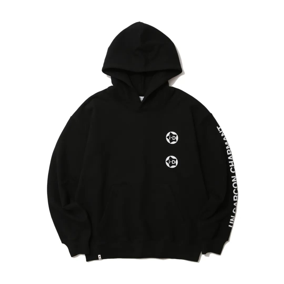 特别推出的联名帽衫,正面带有U.G.C品牌标志性的2圆点标识,并且在其中融合了象征《i-D》贯彻40年坚持自由创新的深刻意味的i-D Logo ,双方通过这一设计语言传达联名合作背后彼此对于对方理念的认同与尊重。
