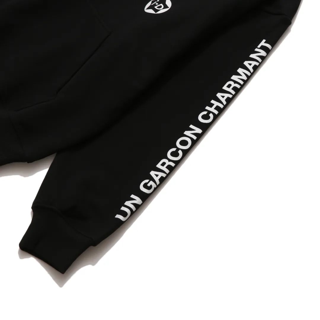 细节彰显合作诚意之处,分布在侧袖的UN GARCON CHARMANT与背部的i-D Logo相呼应,也保持着统一的平衡基调。