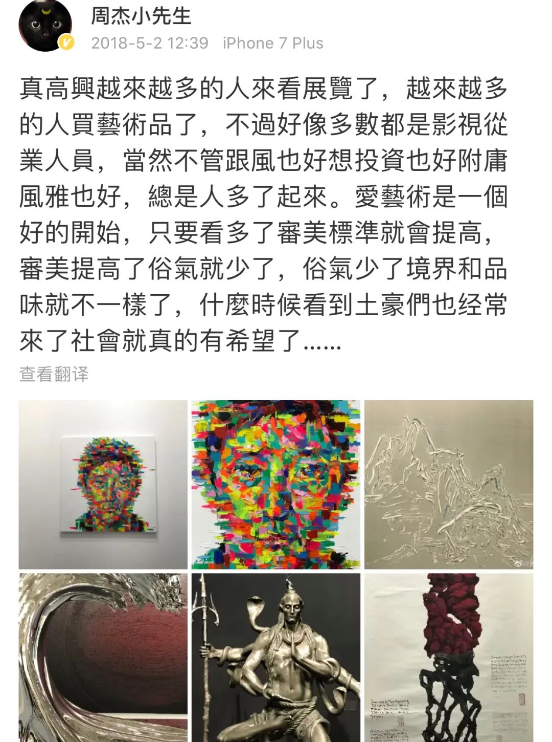 他经常在微博分享他对艺术的感受和看展时的图片。▼