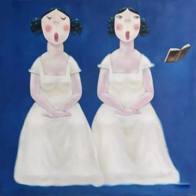 ▲周春芽《同学》,布面油画,38×30cm,1979年