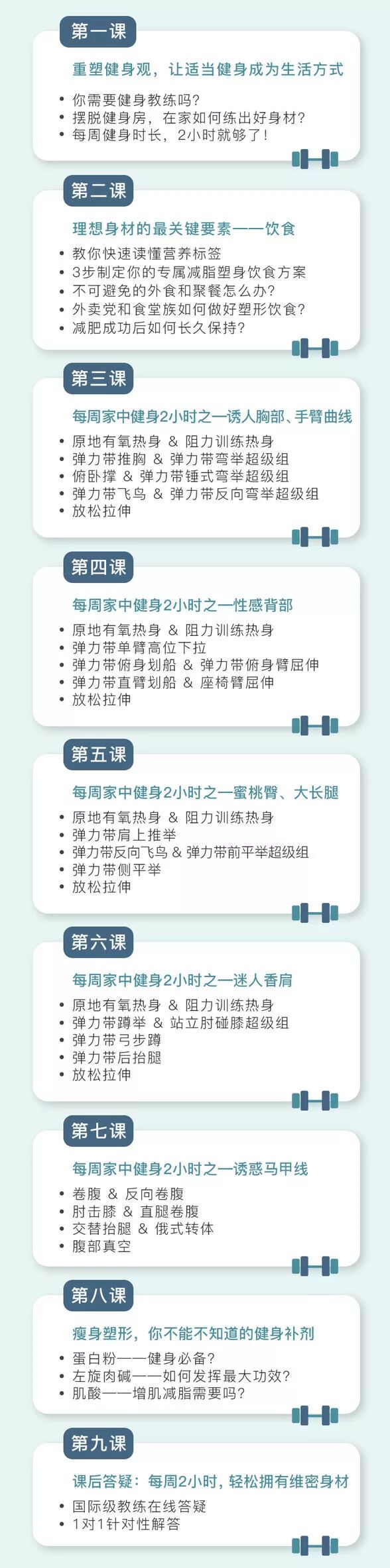 每周只需要两小时,让你在卧室也能够练出维密好身材,线下价值过万元的课程,目前仅需79元,即可让国内顶尖的教练为你亲自授课!