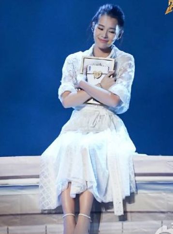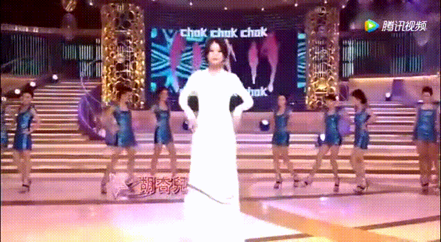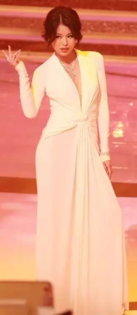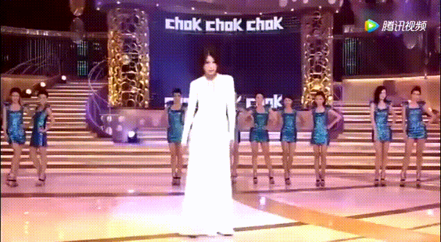 一袭白礼服,衬得身材完美无缺,走到中间还娇嗔的笑了一下,既好看又调皮。