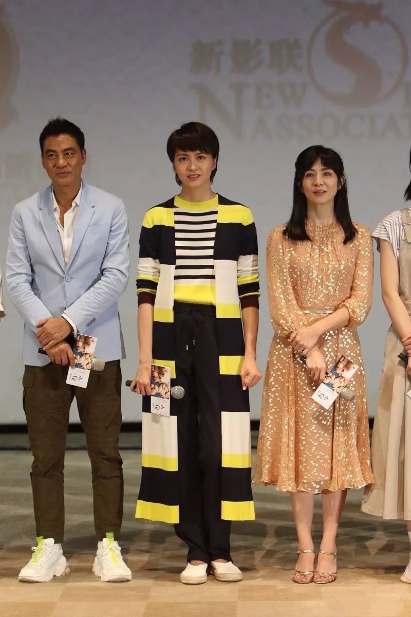 梁咏琪的身材也是挺好的,但是穿搭的审美真的是很糟糕了,条纹的上衣配着宽松的休闲长裤就算了,还要搭配长款的条纹外套,看上去就非常的老气,就像大妈一样,在会扮嫩的杨采妮面前就显得很一般了。