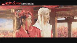 再来看正面,Baby这套大囍的凤冠霞帔可谓美得不落俗套,精致的头饰让观众们感觉到了剧组在造型上的诚意。这个造型也成了baby在片中最惊艳的一套。