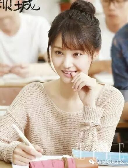 作为学霸的贝微微自然有很多认真用功的时刻。这样裸色的针织衫也很柔美少女,搭配的依旧是清爽丸子头,想象中的学霸校花似乎就是这个形象啊。