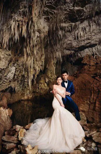 在吴奇隆所属的“太阳动力文化传播”所提供的照片中可以看到,他身着蓝色全套西装,站在小船的船头,一边仰头一边将一只脚往前踩,模样霸气十足;刘诗诗则是身穿白色婚纱站在小船里,将手伸往上方,小两口的拍摄地点是在新西兰怀托摩萤火虫洞,成群发光的萤火虫就像是夜空中的银河般,形成点点星光,画面相当浪漫。