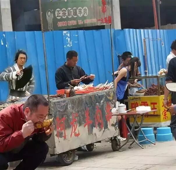 吃瓜群众当时各显神通P了各种楚大侠卖羊肉串的神图~