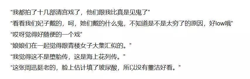 去年的时候,有一段于正吐槽《如懿传》的语音流出,这段语音的内容大致被翻译成这样。说起剧组的行头,于正吐槽《如懿传》的行头都太low了。甚至吐槽对方的剧组太过寒酸,于正说:“好随便的一部戏。”