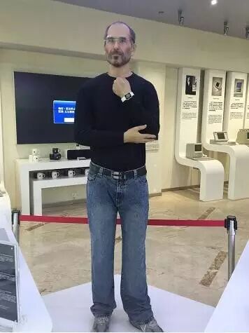 看完了手机博物馆沿着主路继续往前行走约300米可以看到一家超大的手机综合体验店,在一楼就可以发现有乔布斯真身蜡像。没错!这就是苹果数码产品综合博物馆。