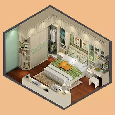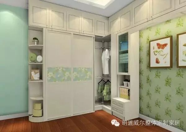 ▲衣柜采用到顶趟门设计,储物功能强大;转角处做旋转衣架,取物方便,也提高了空间利用率。