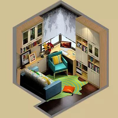 ▲书桌的靠窗设计不仅充分利用了转角空间,采光也很好。