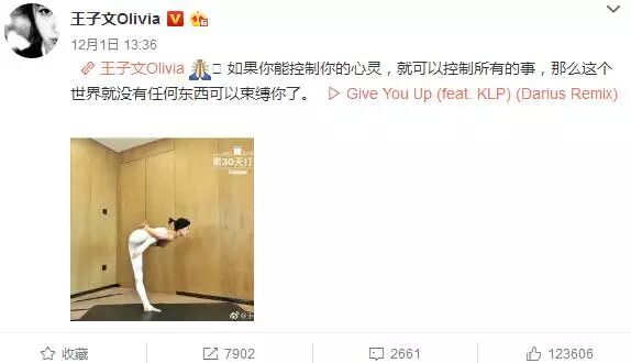 正如王子文在第30天瑜伽打卡中写到:如果你能控制你的心灵,就可以控制所有的事,那么这个世界就没有任何东西可以束缚你了。