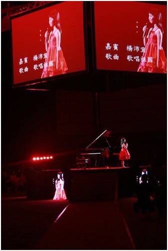 而在表演上,量不多却也都是拿得出手的专业演出。8岁在香港红磡体育馆参加“香港国庆60周年”晚会,与张学友演唱压轴曲目《仰望星空》。