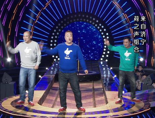 视频中,三位中年男子在《让梦想飞》的舞台上自称中年版TFBOYS组合,他们来自山东本土济宁,因为微山湖上处处有荷花,故组合取名“荷之声”。