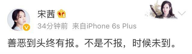 随后宋茜更博表示善恶到头终有报↓↓↓