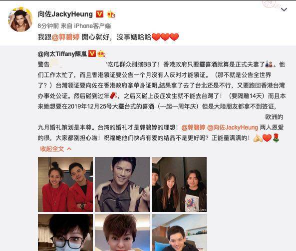后来还是向太发了长微博出来解释,称在香港只要摆酒席就算是正式夫妻了,两人恩爱的很,让大家都别担心了,祝福他们快点有爱的结晶才更好。