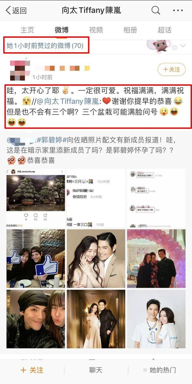 这次消息传出来后,向太回复还点赞了祝福的微博,看样子郭碧婷已怀孕的消息,有很大可能是真的。