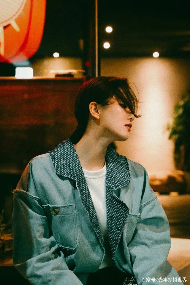 刘诗诗气质出尘,哪怕是简单的基本款,也能穿出时尚感,内穿白色T恤,圆领的设计,秀出其优美的天鹅颈,外搭蓝色的牛仔外套,从颜色的搭配看来,简洁又大气。