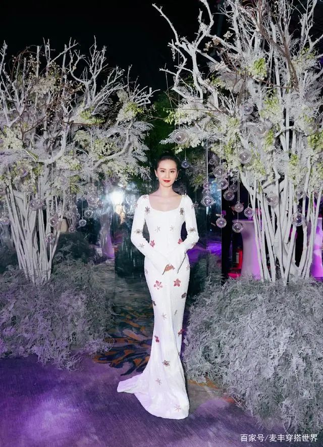 刘诗诗的身材匀称,穿着一条连衣裙,搭配发髻,静然站在那里,就散发出优雅端庄的魅力,鱼尾裙摆的设计,展示出其S型的曲线,这身造型看起来既性感又不失优雅,十分惹人注目。