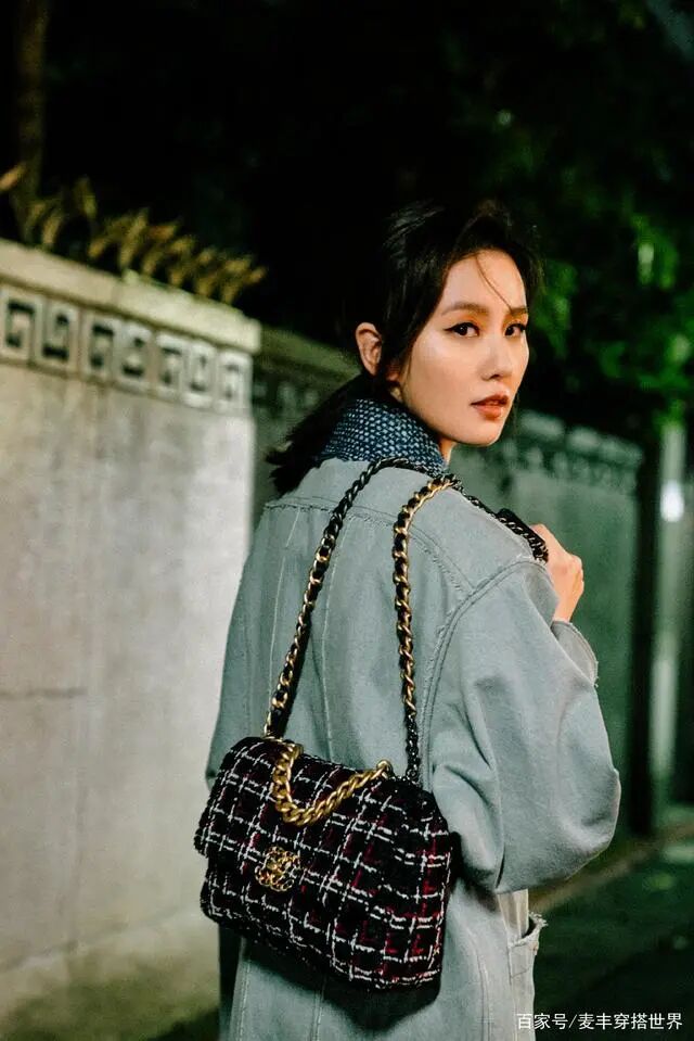 写真照中的刘诗诗,穿着一件2万8元的外套,整体廓形简约,没有过于繁杂的修饰,却藏着小心机,这是因为她下身选择了一条黑色的紧身裤,上宽下窄的搭配,秀出纤细修长的美腿,提着一个格纹包,站在路灯下,来个侧颜杀,美呆了!