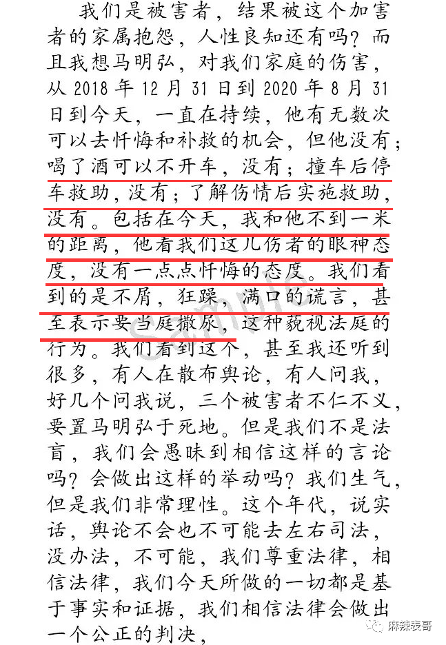 就像马某某方律师强调,是谭松韵妈妈一行人出行没有注意安全,强调马某某有自首情节,甚至马某某的律师多次打断谭松韵律师,胡搅蛮缠,企图转移重点。