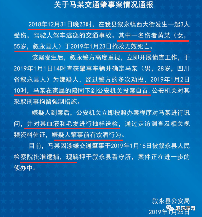 从通报来看,这起案子难度并不高,被害人,肇事者,肇事车辆,以及截止1月25日时,通过走访和视频资料能确定肇事者在肇事前有饮酒行为。