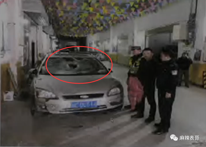 受害家属说自己的父亲140斤,却被撞飞了起来。他们看到车上的大洞,都感到惊恐和后怕。