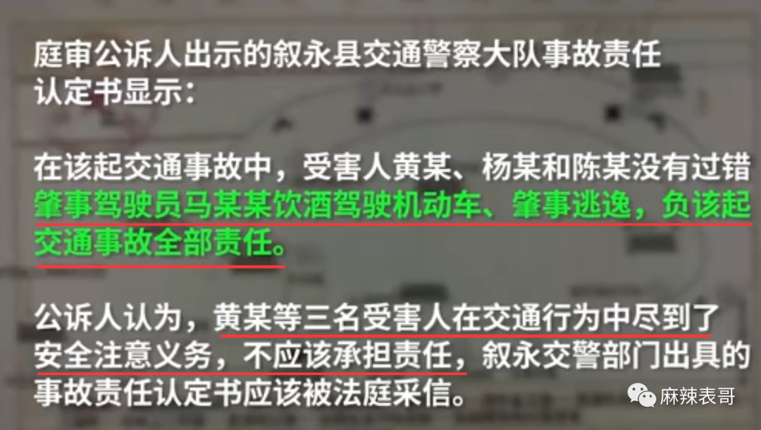 公诉人(检察院的司法人员)出示的认定书里,受害人不承担责任,马某某负事故全部责任。
