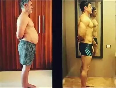 ▲阿米尔·汗为拍《摔跤吧,爸爸》增肥27公斤