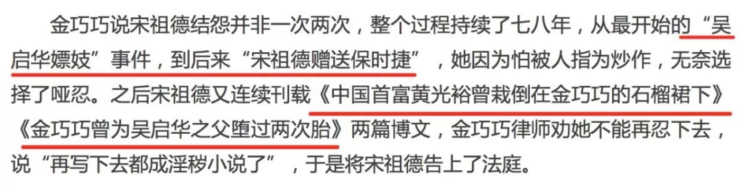 再后来,金巧巧和宋祖德打起了骂战。宋祖德在博客中写了多篇文章污蔑金巧巧,后来金巧巧把他告上了法庭,赢了官司。