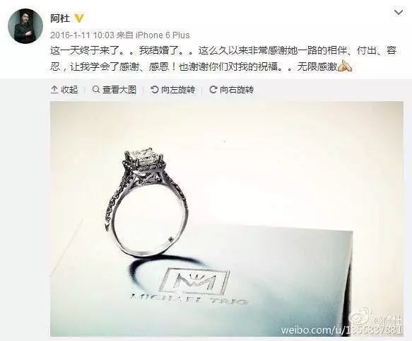 最后,拯救阿杜的还是家庭。去年1月份的时候,阿杜在微博宣布了自己结婚的消息。