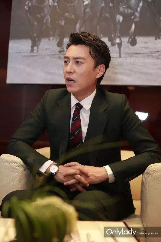 下午,我们在浪琴的展馆如约而至,这次,靳东换了一身墨绿色的西服,依然的三件套,这次的领带走的 是复古学院风路线,佩戴了一款浪琴表名匠系列逆跳月相腕表,并与浪琴表中国区副总裁李力一起接受OL的独家专访。