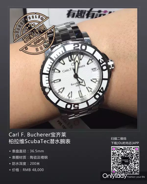 推荐理由:作为一款潜水女表,白色的主调既时尚优雅,又不失潜水领域的专业度。而36.5mm直径的表盘大小刚刚好,佩戴上也并无不适感,十分贴合女生的手腕。