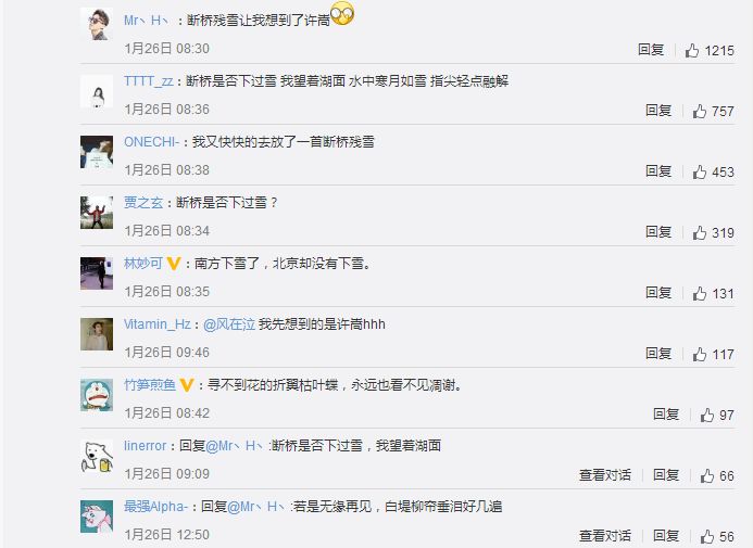 前段时间西湖下雪又让许嵩火了一把,因为许嵩有首歌叫做《断桥残雪》,大家都知道断桥残雪是有名的西湖十景之一,在杭州迎来降雪,雪后的西湖银装素裹,大家也有机会看到了断桥残雪的美景。也有很多人在下面刷起了许嵩《断桥残雪》的歌词,刷刷评论小K也忍不住哼了起来,依旧是那么好听的曲子啊。