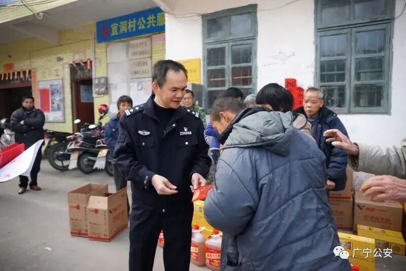 2月5日上午,广宁县公安局党委副书记、副局长陈少华带领民警到宜洞村开展送温暖帮扶慰问活动,为41名帮扶对象送上慰问品和慰问金,让他们过上一个祥和喜庆的新春佳节。