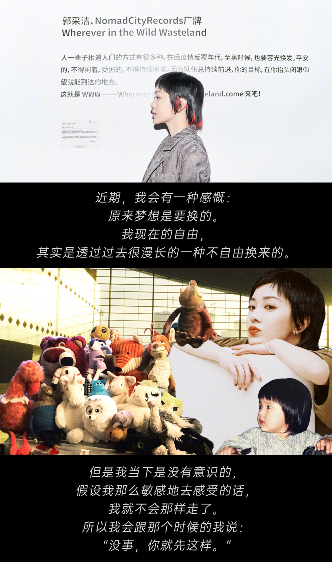 郭采洁:我的被使用期限是12年. 我要WhatYouNeed 港台女星 2022-07-15 23:52:08 375 创作不易,用心坚持,欢迎请BaGua喝几杯爱心咖啡!打赏并支持本文 打赏并删除本文 晚上好,我是大宽。我的上一份工作,是在电台当 DJ。那时,每当郭采洁发新专辑,我会一首一首地放出来给听众听。 她在《我如果遇见我》里分享自己的快乐构成,“我 爱我 就有快乐”;面对恋爱心事,她唱“突然大雨是我们/爱情最好的天气”;关于成长,她的感受是“以前最常说怎么办/现在最常说没关系”。 从她的歌里,我能听出一个女生的成长路径。直到有一天,郭采洁突然发布了一张电子音乐专辑。过往的共鸣、治愈与鼓励,忽然成为了强烈,鬼魅,有力量的。 后来,她参加了乘风破浪第三季,用同样的气质表演了《我有一颗苹果》。 郭采洁是如何发生变化的,我抱着这样的好奇,前往长沙,和她进行了一场聊天。 如果你想快速收看我们也为你准备了图文版本来看看,作为姐姐的郭采洁吧来乘风破浪第三季,镜头里的你和你心里的样子一致吗?07 年,还是一个大学生的郭采洁通过歌手身份出道了。参加《乘风破浪》,让她在大众面前,回到了歌手的身份。 出道时,她要撑起家里经济的目标非常明确。即使是不开心的,她也没有过多地在痛苦里摆荡。 “我的想法特别直,就是一条路,我先这样走就对了。”摆荡到了 19 年,她选择离开了公司,给了自己一段逃跑的时间。 在我试图提问,她如何平衡工作和生活这个问题的时候,她给了一个非常极端的答案:“在工作的时候,我是不要自己的。有时候,也觉得自己是在被‘使用的’。” 我在想,我们的人生,是不是总有一段“被别人使用”的时间? 在那段时间里,我们是完全成为工具的,去尝试让我们不开心的事,试图去做我们不会做的事情,然后才能试出一个属于你自己的边界来。 但来自郭采洁的温馨提示是,被使用也是有期限的,她的期限是 12 年,你的期限会是多久呢?让你觉得“不能再这样下去”的事情是什么?“我的力气只够把工作做好了。” 她让我想起有一次,和下班之后的朋友散步回家,风吹动树叶,很像一种海浪的声音。我说,我们现在来玩想象我们在海边的游戏好不好。 那位 7 点起床上班的朋友毫无兴趣地说:“我没有想象力了,树就是树,说什么海边。” 我一时有些内疚,大家都太累了,被工作消耗到没有任何力气。 郭采洁在一次采访里说,疫情让她开始重新思考生活的排序。 “疫情之后,每个人都在重新梳理自己对时间的感受,然后找回到自己生活里的排序。” 或许,当你累了的时候,你可以蹲下来,问问自己,这一刻,你要不要找回自己的感受。如果花百分之百的心力,做了一张只有 30% 的人听的作品,你会觉得可惜吗? 大家可能不知道,郭采洁除了《我的未来式》之外,还有一首非常火的歌,叫《答案》。 我只要把歌词打出来,你就知道了:“爱就像 蓝天白云 / 晴空万里 突然暴风雨”。 这首歌是 2014 年发布的,4 年之后,它才突然在短视频软件里爆火。 被喜欢,是需要待机时间的。这个时间有可能是 1 个月,可能是 4 年。 没有任何人有标准答案。 通过浪姐被越来越多人知道真实的你,你是更期待还是更紧张呢?要抓紧一个最有激情的自己,我很久没有听到这样有斗志的话了。 新的郭采洁是什么样子? 在过去的 2 年时间里,她成立了一个叫“游牧城市”的音乐厂牌,做了一张新专辑叫《Vol.13-1986数羊》,组建了自己的乐队,也在去年做了城市 Livehouse 巡演。 她在浪姐第一期介绍这些的时候,采访者并不了解。 她两手一摊,大大方方地说:“你不知道,没关系,我来找你啦。” 人们总是偏爱挫折叙事,我记得之前有一个谣传,“芒果台给郭采洁准备了一个一定会火的初舞台剧本,但是她拒绝了”。 郭采洁在一开始就非常笃定,即使不被了解,也不想再蹭过去的自己的热度,那样的热度毫无意义。 她更想在 36 岁重新做一次自我介绍,坦坦荡荡的: 不好意思噢,我是这样的,你看看吧。 你有观察过支持你的人,是什么样子的嘛? 刷到有关于郭采洁发型的小红书,最高赞的一条评论写着: “我觉得这个发型不是特别好看,但是姐姐高兴就行。” 我想起,她曾提到过自己初中时的头发禁令:头发必须短到耳下一公分。进了娱乐圈之后,公司又要求她,必须要留长头发,她又想方设法把头发弄短。 而现在,她在最近自己拍的 Vlog 里,高高兴兴地用头发软化剂,软化自己刚长出来的硬挺的头发。 很高兴看到她拥有迟到的自由。 看到刚出道那个比较青涩的自己,你会想跟她说什么? 听到这个答案的是,我心想,郭采洁真的是很倔强。 明明前路一切不轻松,还是要把自己丢进困难里。 但后来,我听到新专辑里,她作词的一首歌,我突然意识到,她除了倔强,还有一种对自己的“不敏感”。 那首歌叫《别派一群兔子猎杀一只狐狸》,是郭采洁自己改编的一个童话故事: 有一天,一个快乐的小孩发现自己变成了一只狐狸,变成了兔子们的噩梦。兔子想要杀掉她。 小孩很难过,哭到眼泪把世界都淹没了,小孩的狐狸皮也因为泡在眼泪里,逐渐脱落了下来。兔子们不会游泳,小孩用自己的皮包住了兔子们,变成一艘船游向岸边。 岸上有一只仙女棒,可以让兔子们消失,小孩拿着仙女棒犹豫了一下,还是决定把自己变不见了。 她写这个故事的时候,想起了毕飞宇写过的一句话:我们在表达恨的时候是天才,到了爱面前,我们