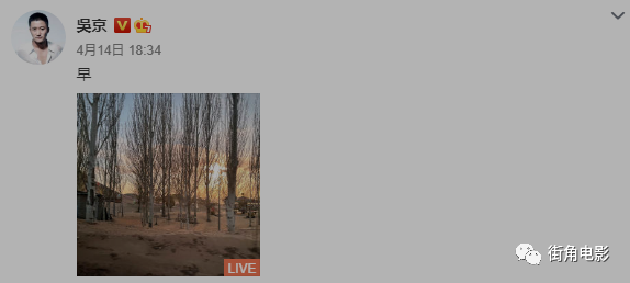 翻看吴京这段时间的动态,一连多日在下午6点多与网友道早安的他,不难看出正在剧组拍摄电影的吴京是在拍摄大夜戏,可以说很辛苦了。