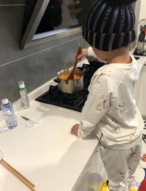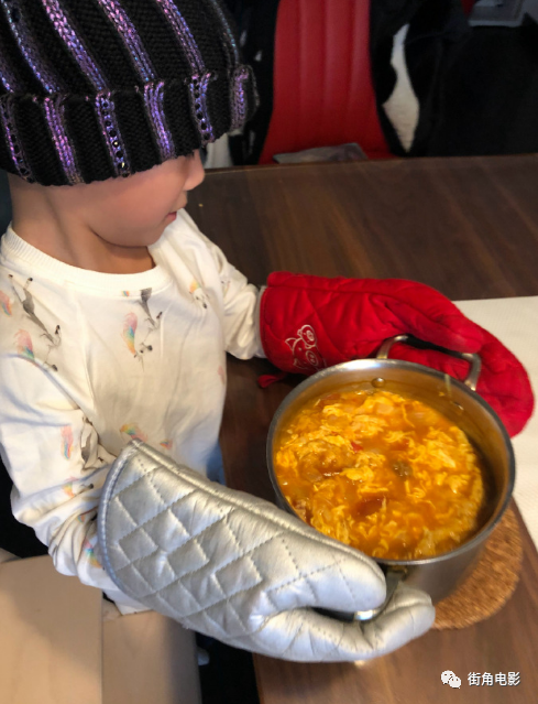 吴京在外拍戏的这段时间,留在家中照顾两个儿子的谢楠小日子过得也很是不错。还不到7岁就已经会做饭的吴所谓没少做美食投喂妈妈。