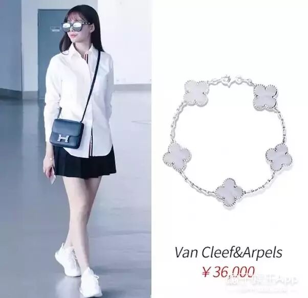 这身的亮点还不止。Van Cleef&Arpels四叶草手链不要错过。从头到脚都是网红配置简直兢兢业业。