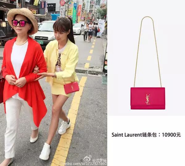 Saint Laurent经典的链条包,也是走进了千千万万潮人心中的必备包,沈梦辰很喜欢鲜亮的颜色,符合“傻白甜”的人设。