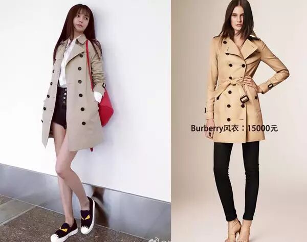 米色风衣是Burberry家的。售价15000元。完美适合于一年四季任何时节以及出席任何场合穿着。