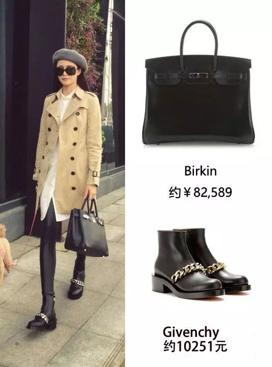 Burberry风衣+爱马仕Birkin包+Givenchy链条靴子,俨然网红的顶配,没有个十几万下不来。