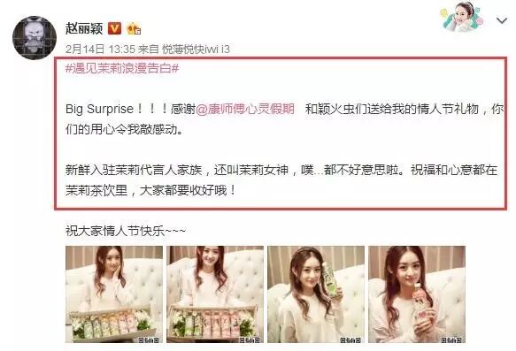 昨天是情人节,赵丽颖微博更新。